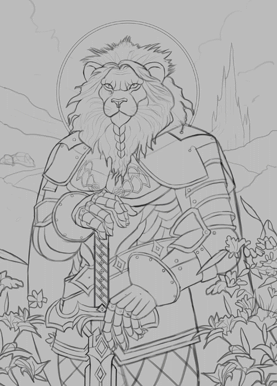 I wasn't happy with my previous attempt at a lion+warrior combo, so I decided to take another shot at it. This image took quite a while to paint due to the level of detail I was aiming for, but it was worth it as I feel I was successful in giving it a very rich, lively look. Overall I'm much more satisfied with this attempt, and I hope you enjoy the illustration as well!