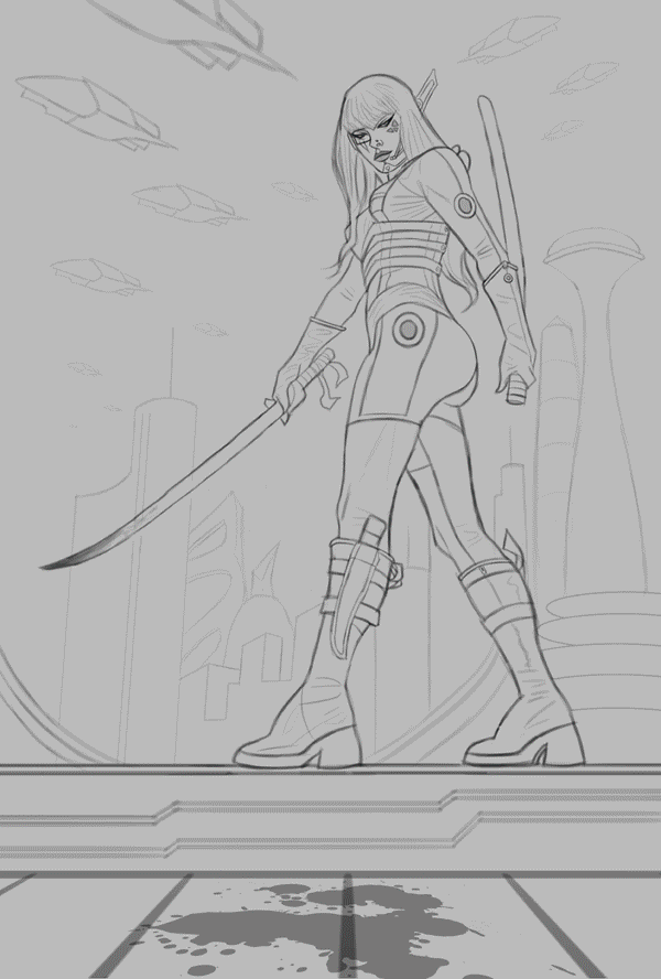 With this image I wanted to convey a futuristic vibe with a sci-fi theme. I chose to depict a cybernetic enhanced assassin as that was something I haven't painted before and though it would be great fun to explore. And it was! Had a blast bringing this image to life, and I'm quite pleased specifically with how dynamic the image works as a whole. Please enjoy!